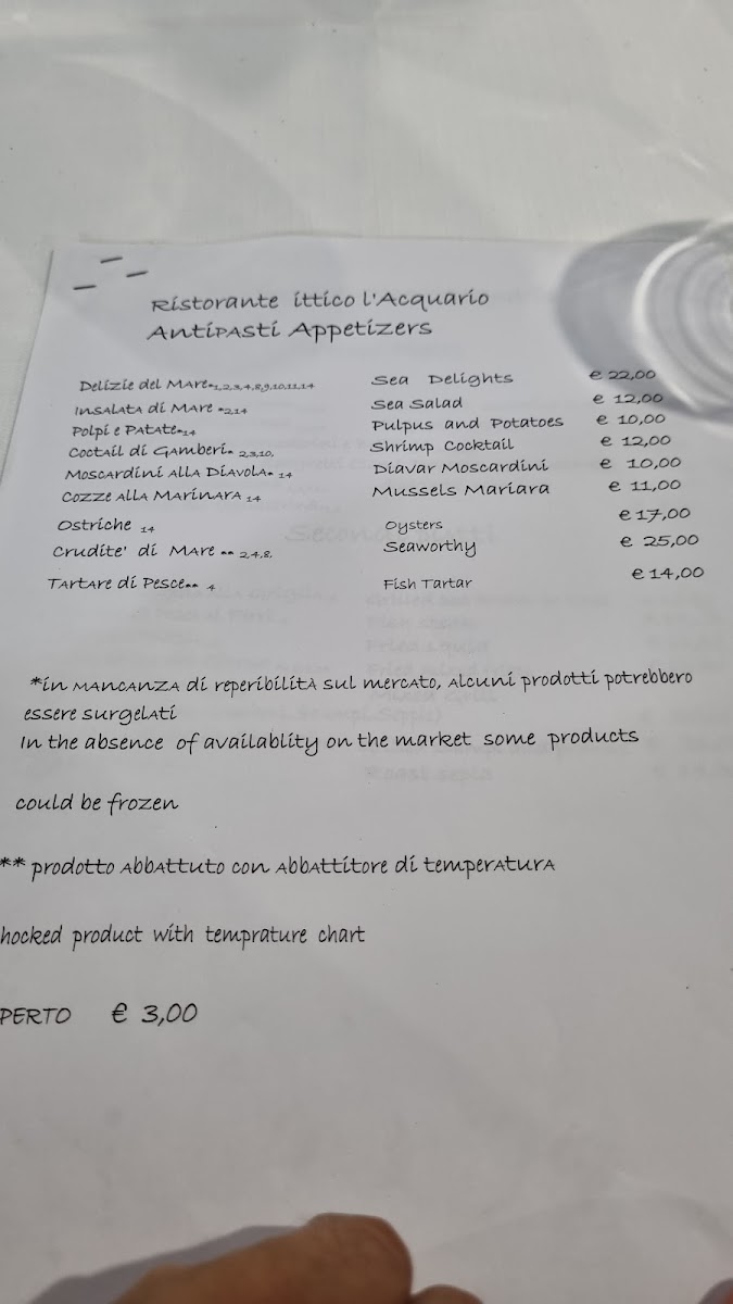 From perfectly grilled fish to pasta dishes that make use of the freshest catches, there’s no shortage of variety. Each dish reflects the region's rich maritime tradition, crafted with simple ingredients that allow the natural flavors to shine. With an inviting ambiance and attentive service, dining here feels like a mini-vacation by the sea, making it the perfect spot for both locals and visitors alike. Come for the food, stay for the experience - and let the Ristorante Ittico L' Acquario Menu guide you through a delicious journey.